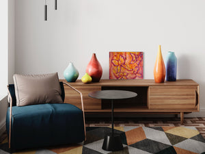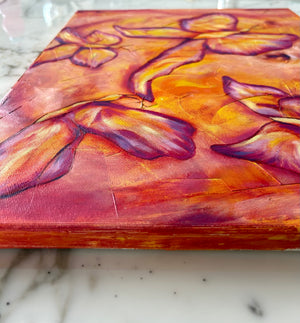 This original oil painting "Feeling Butterflies", 40x50cm, is a pure piece of joy to feel happiness. The bright orange colour with different hues, shades and textures uplift your mood.
