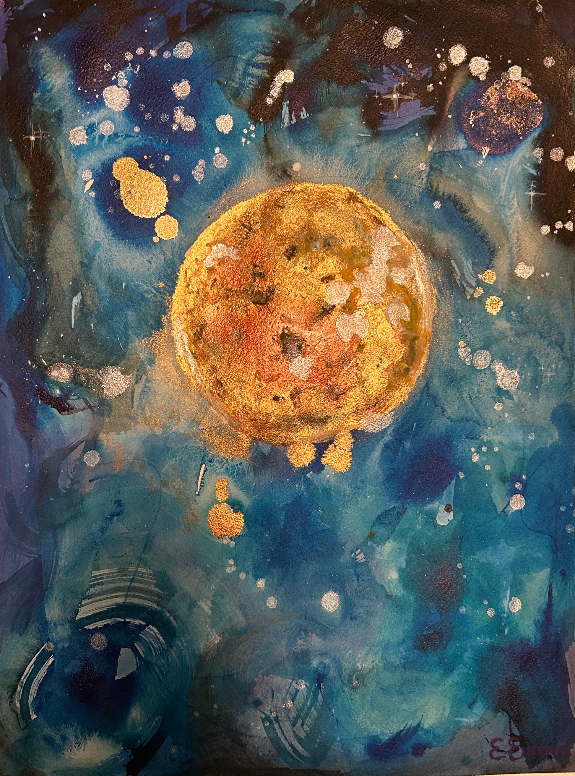 - Original painting on paper, mixed media (acrylic, ink, spray, wax pastels)