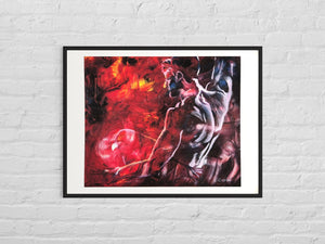 With this painting I wanted to express the fire that is in us, this force that comes from within, that transcends us and spreads, that pushes us forward, towards our desires and our amibitions. And this man, sensual, soft and strong at the same time, dancing with the force of fire.